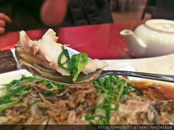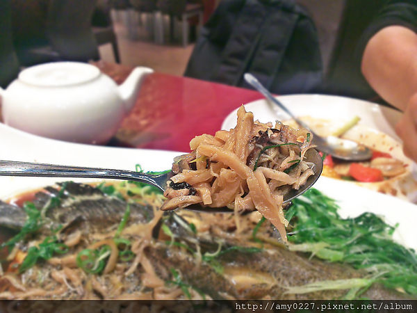 這是我第一次吃到蒸魚上頭有筍絲和香菇絲的,一般來說,這好像都是滷蹄膀才會出現的配菜XD