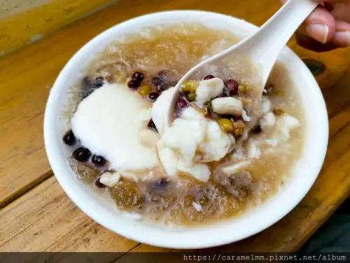 現做的桂花香氣十分的濃厚,上面可看見一粒粒的桂花粒,幾乎每一口都是桂花香,吃完後嘴裡也都是桂花味。