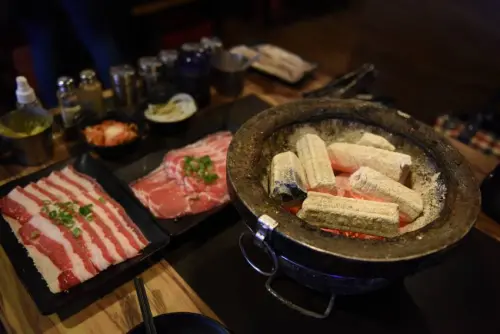 炭爐使用的是燒到通紅的木炭, 不會在燒肉過程中還會有小黑炭粒子飄呀飄