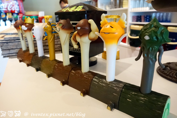 每個桌上都有方吉菇菇筆,吧台上還有一整組的方吉,