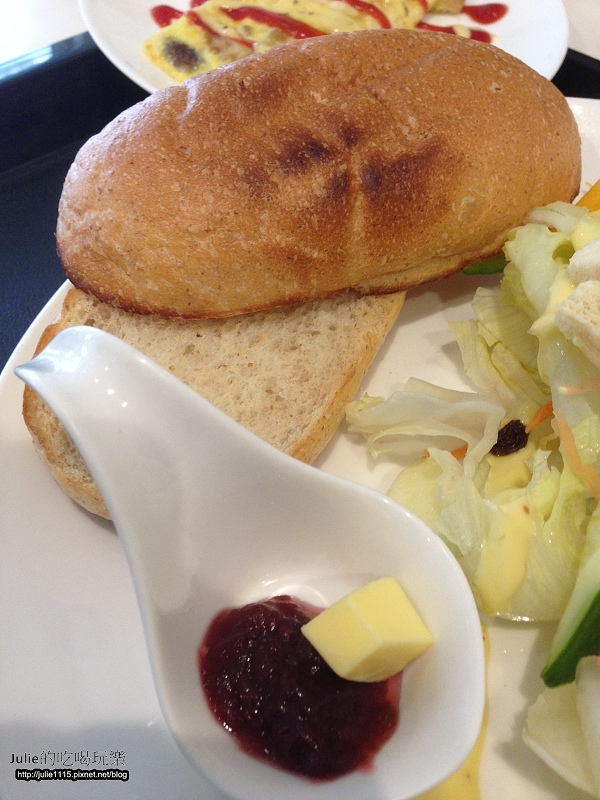搭配酸酸甜甜的果醬一起吃也很不錯,奶油的部份也滿香的。