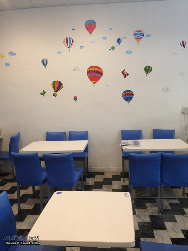 ↑店內整體走藍白配色的地中海風,還挺清爽的!牆壁上的熱氣球壁貼也很可愛~