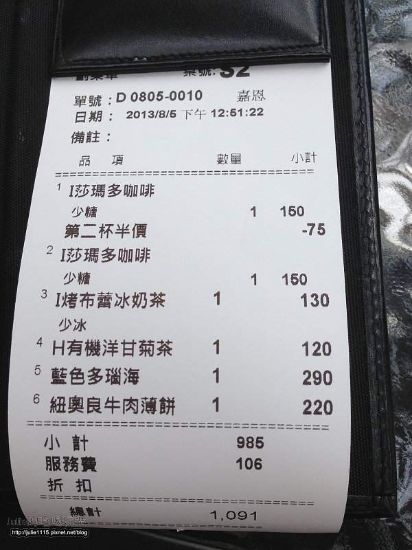↑我跟J阿姨點的都是莎瑪多咖啡...沒有別的原因,純粹是因為它有第二背半價的優惠..哈XD