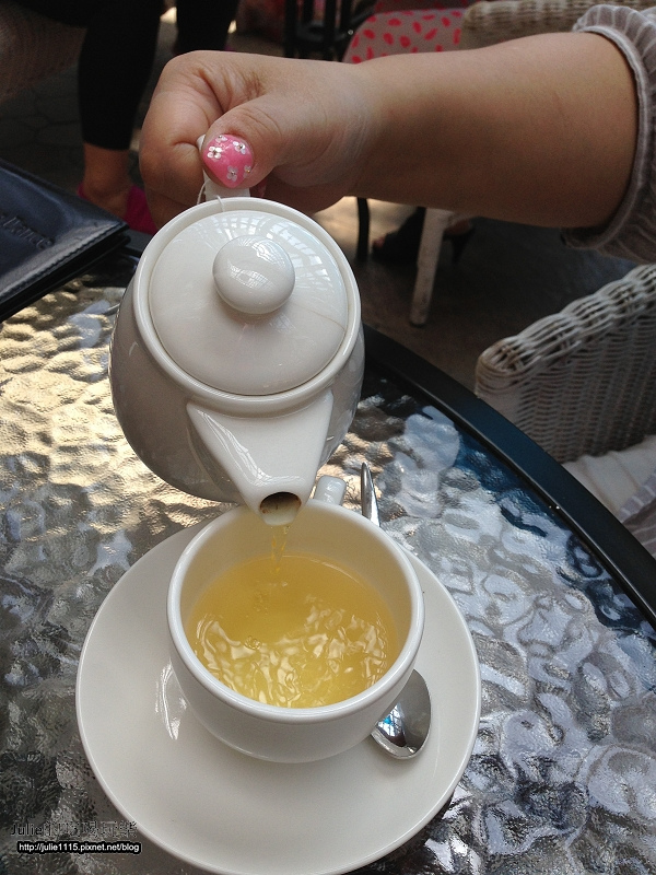 ↑J媽點的有機洋甘菊茶,淡淡的洋甘菊香氣,還挺清爽的。