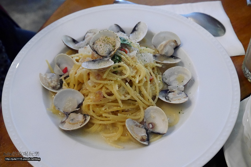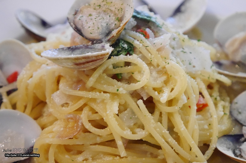 ↑J媽點的精選主廚料理--辣味清炒白酒蛤蠣麵(微辣),$170