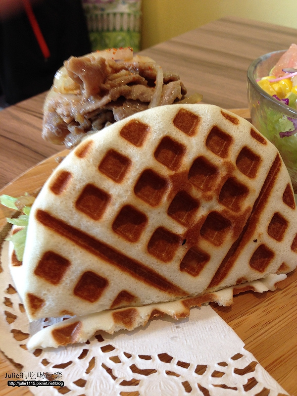 跟一般的漢堡不一樣,格紋的效果看起來很像鬆餅,但也不是鬆餅。