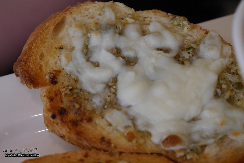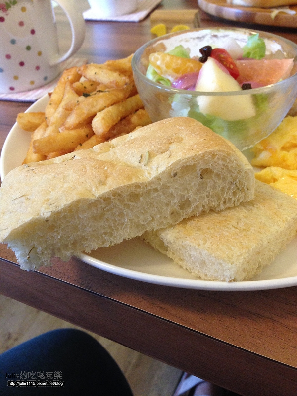 ↑份量很充足的佛卡夏麵包,帶點香料的香氣,整體來說很鬆軟,跟一般的吐司比起來比較不一樣。