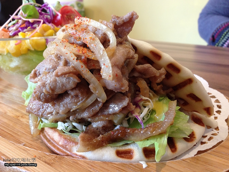 原本以為加了薯餅會很突兀,但其實不會耶!薯餅跟口袋餅竟然超乎我意料的MATCH~