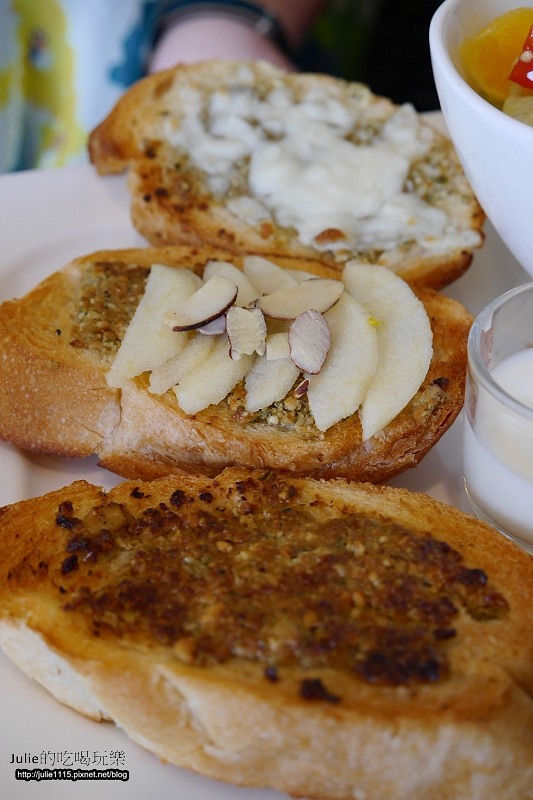 ↑加了蘋果片的堅果醬吐司因為多了點水份跟蘋果的甜度,是我最喜歡的口味。