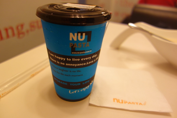 餐點收據夾及衛生紙都印上Nu-Pasta杯杯麵招牌標誌^_^