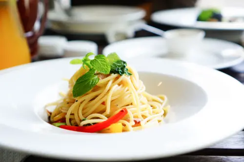 原本擔心中午太過悶熱,還好幸運的被安排在有建築物遮蔽的戶外座位區