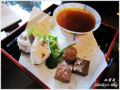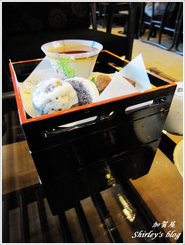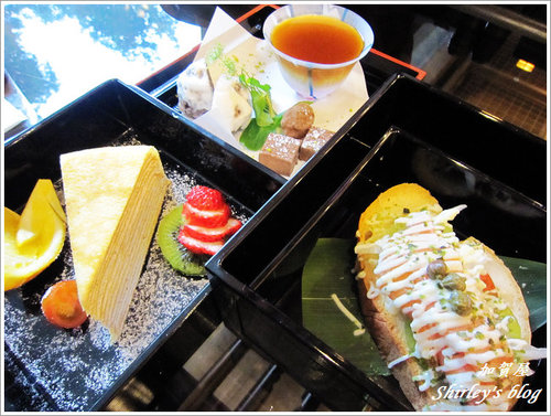 第一層有焦糖布丁、巧克力以及包了紅豆餡的日式甜點