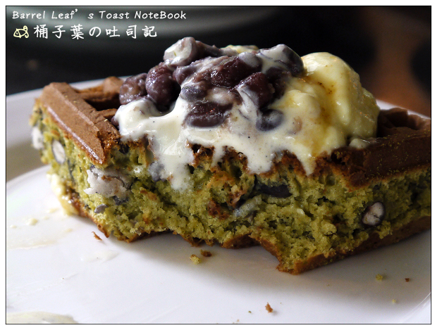 鬆餅可以單吃,吃的到明顯的抹茶茶味,豐富的吃法~就是加上布蕾、冰淇淋、紅豆泥嘿~!