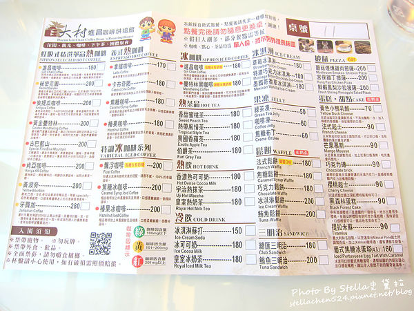 MENU:咖啡、冰淇淋、鬆餅、披薩、三明治、蛋糕...