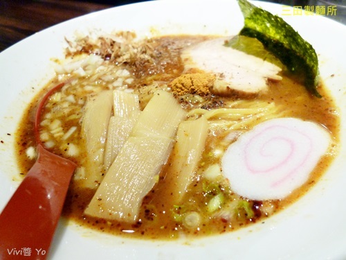 當天天氣冷,選擇了熱麵,濃厚的湯頭聞得出濃濃的魚香,湯頭用豬骨、雞骨、大量蔬菜與海鮮等魚介熬煮而成,濃稠美味