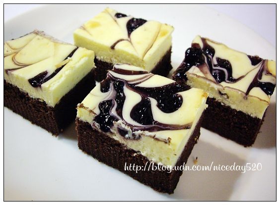 濃郁苦甜巧克力蛋糕體很綿密,搭配乳酪,擠製藍莓果醬烘烤,