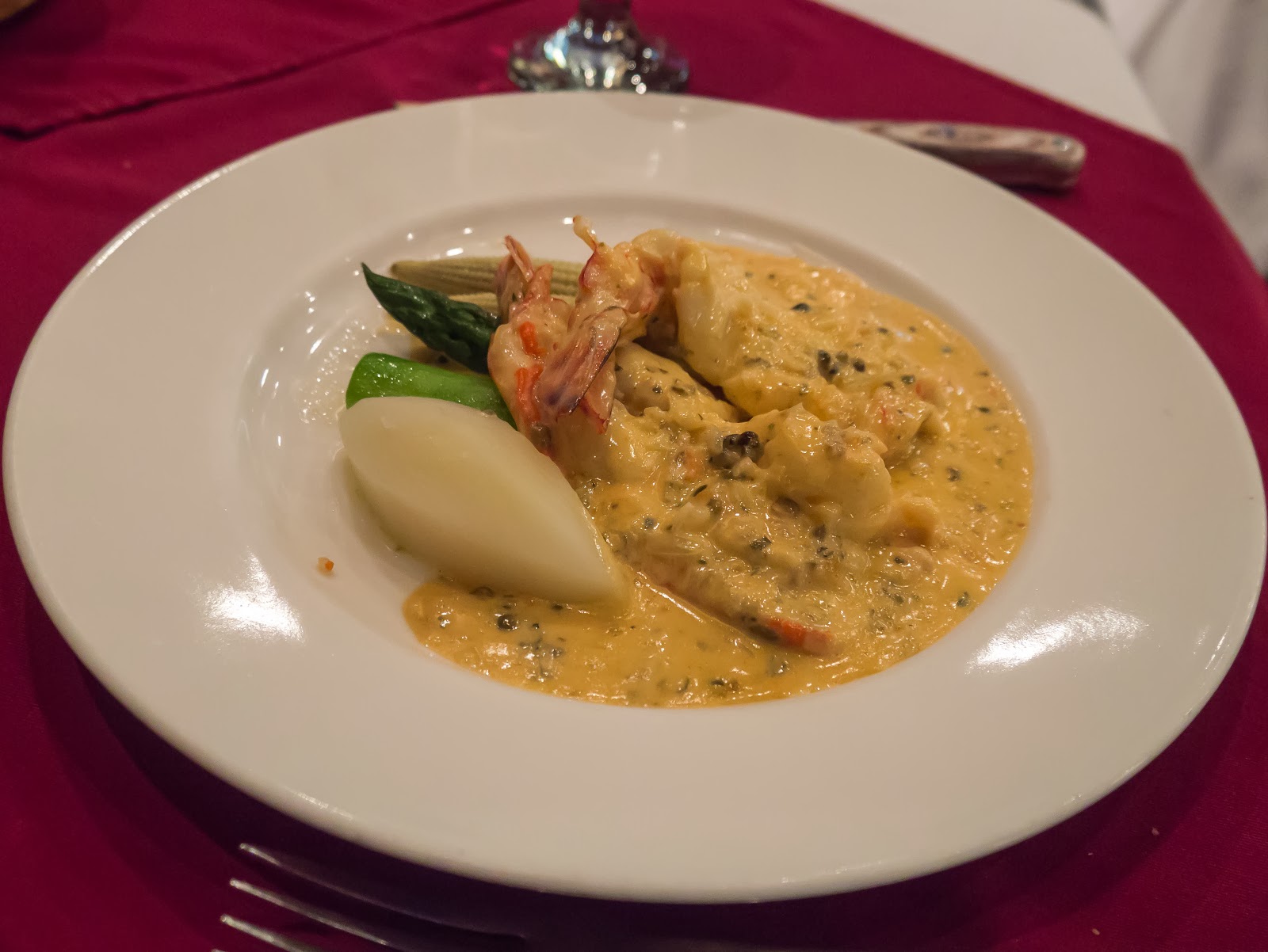 椒汁明蝦,滿滿的奶油與辛香料味,椒汁的椒應該是綠胡椒的意思,很濃郁的一道菜