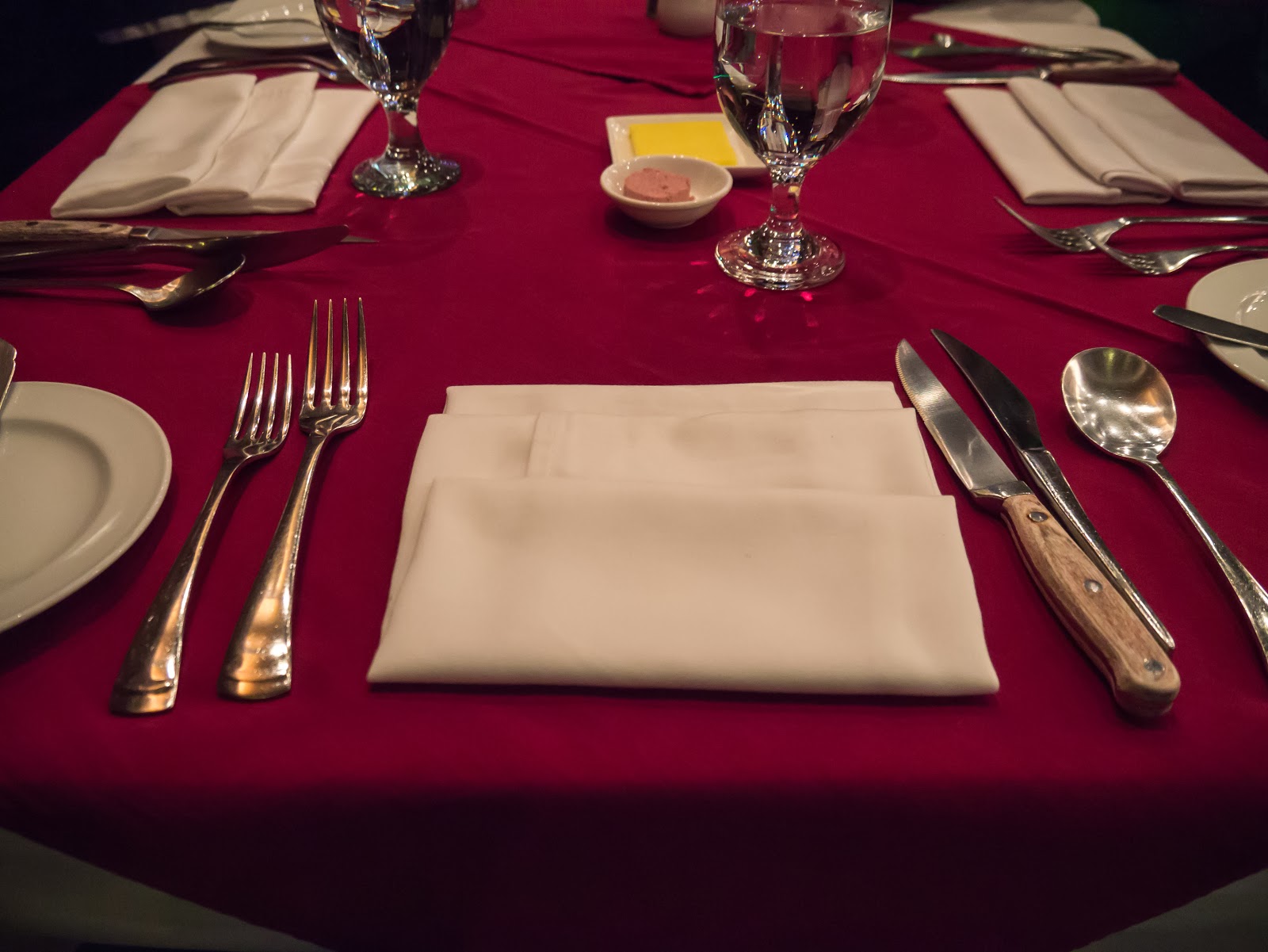 傳說中的國際禮儀 (? 開玩笑地,點完餐之後服務生會依據你點的餐點重新佈置餐具一次