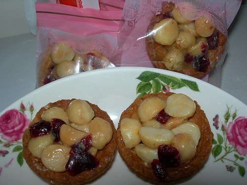 成份:麵粉,砂糖,全蛋,奶油,安佳鮮奶油,法國發酵奶油,夏威夷豆,蔓越莓