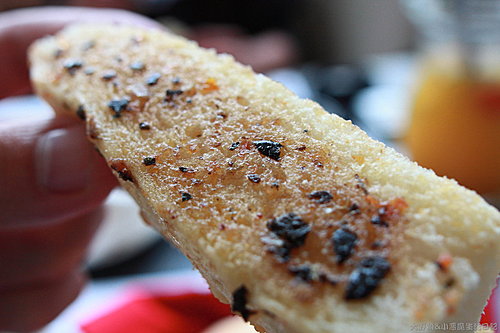 建議再烤乾讓醬汁滲入麵包