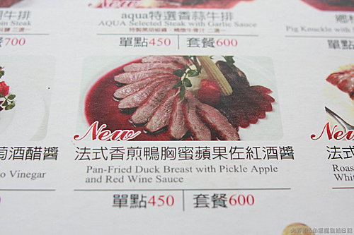 除了六種高價位的排餐外