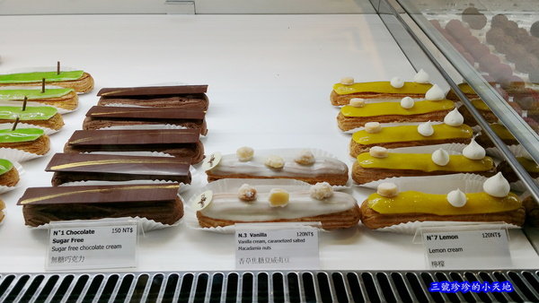 先前珍珍有上網看過1789的泡芙口味,感覺上口味還挺多的,今天只有看到6種,先生說因為剛好剛剛有一大群訂位的客人剛離開,所以剩下的口味不多,好可惜喔!不過,有機會珍珍一定會再來的,他們家的閃電泡芙真的很好吃耶!