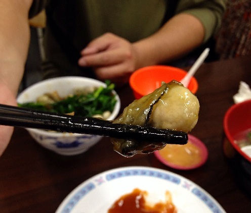 裡面以肉餡 洋蔥(蔬菜)為主,佐以些蚵仔~吃來扎實飽足!