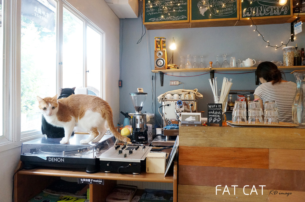 不談這,該說的是咖啡館,「Fat Cat Deli」對於過客來說吸引人的是貓,對稍稍了解Fat Cat的人來說「音樂」才是重點。一男一女年紀甚輕的店長,他們的自介是:「Fat Cat 是由半隊香港獨立樂團幾經波折從匪區逃難到台南開的小店......」。