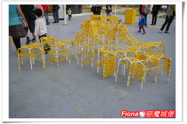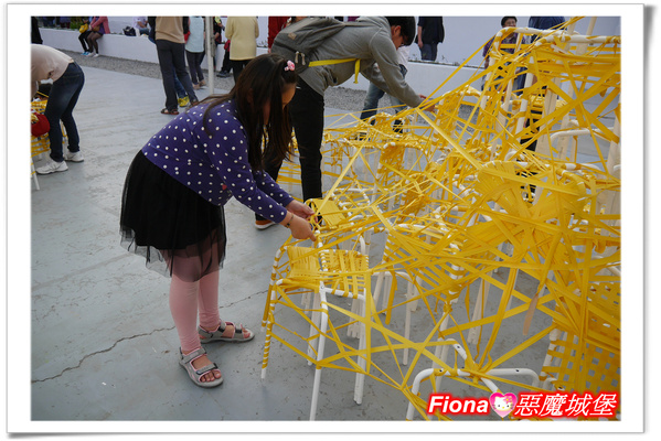 大客廳展出的是「人人沙發」,大小朋友一起用黃色膠帶,纏繞出自己所喜愛的沙發樣式,雖然我不知道它們原本的樣子,但是經過大家的集體創作,已經變成非常有創意的沙發了,我好喜歡這樣互動性高的展覽,我相信過陣子如果再來欣賞,一定會呈現出更不一樣的風貌,呵呵!!