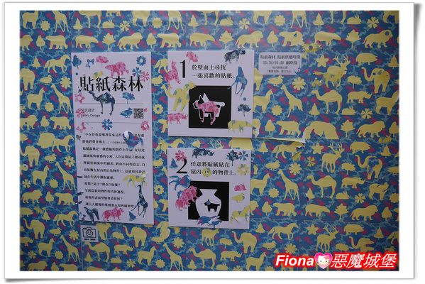 「貼紙森林」小屋的牆面與天花板原本都是色彩繽紛的小碎花貼紙,但是經過開展兩天的洗禮,已經都貼到白色櫃子、器具與地板上了,而且保證的一張都不剩,這讓Fiona頗失望,「人人出品」的展覽太夯了啦!!