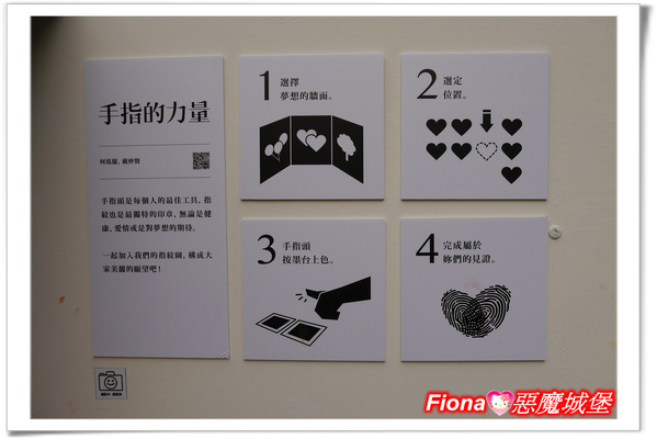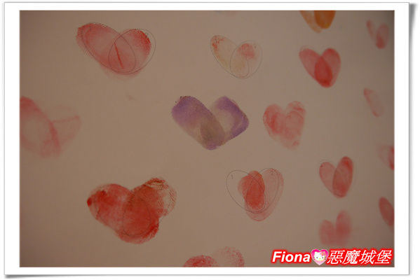 「手指的力量」小屋裡準備了5種顏色的小印泥,善用手指可以創作出各種不同的圖案,還能跟心愛的另一半一起合蓋成一個愛心,見證彼此的愛情,是不是很浪漫呢??呵呵!!