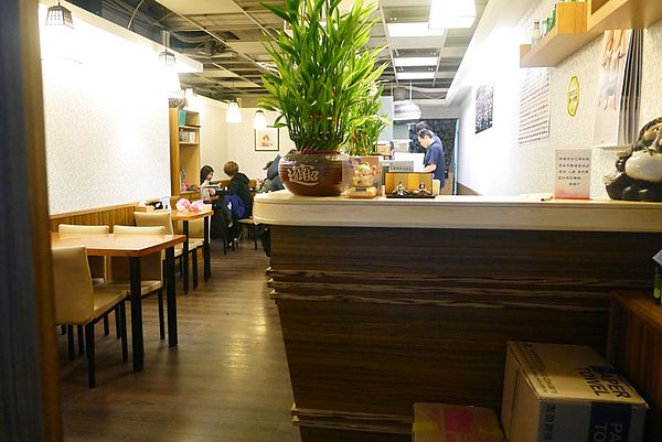 狹長走道以吧台分隔兩塊用餐區,溫暖木質桌和沙發椅,簡單樸實如同小六食堂要給大家品嘗的餐點相同格調:不浮誇,就很好吃
