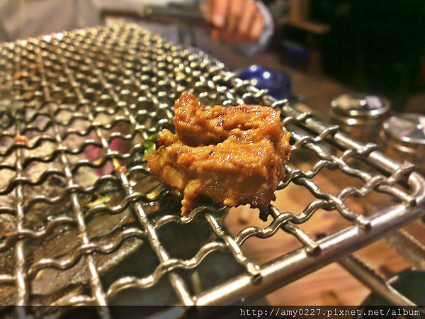 好吃的燒肉就是要先淋上他們家的柴魚醬油,之後再上網烤