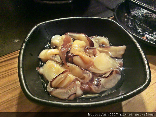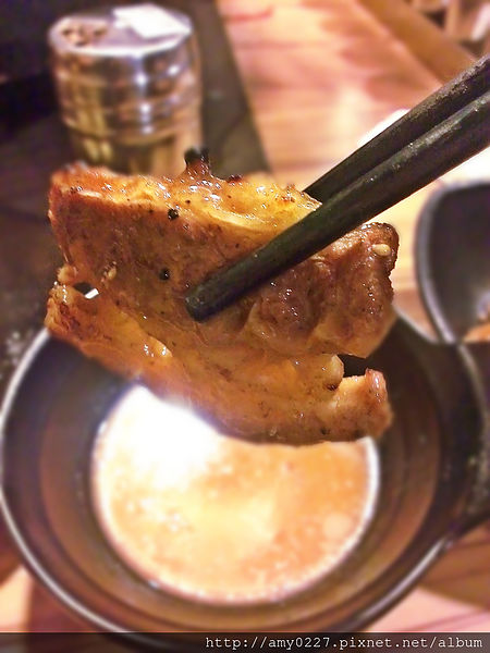 簡單烤過的肉片因為有用柴魚醬油稍微醃一下,吃起來非常香甜,不再另外沾醬也相當美味