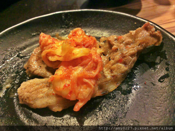 不然也可以像我一樣,將田季特製的泡菜與肉片一同入口,也是馬西搜唷~~~~