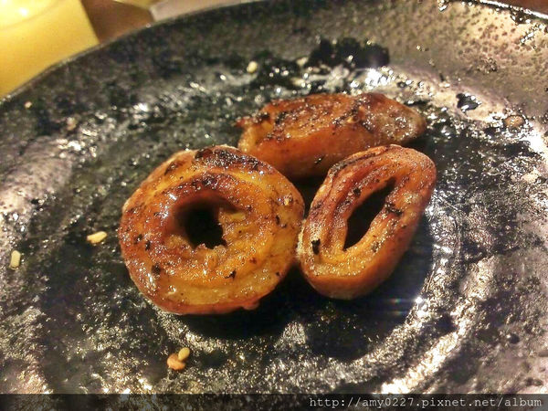 比其它的肉片厚度要來得厚一些,咬勁也挺足的,邊咀嚼會邊有肉汁滲出,但要烤比較久就是了XD