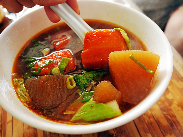 紅燒湯頭放入大量紅蘿蔔及白蘿蔔燉煮後,更加清甜。