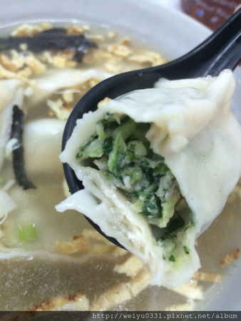 雖然小碗的菜肉餛飩只有六顆,但是每一顆餛飩都是滿滿大份量,來來來,我們直接zoom in到內部小特寫,實在大大滿足呀!!!