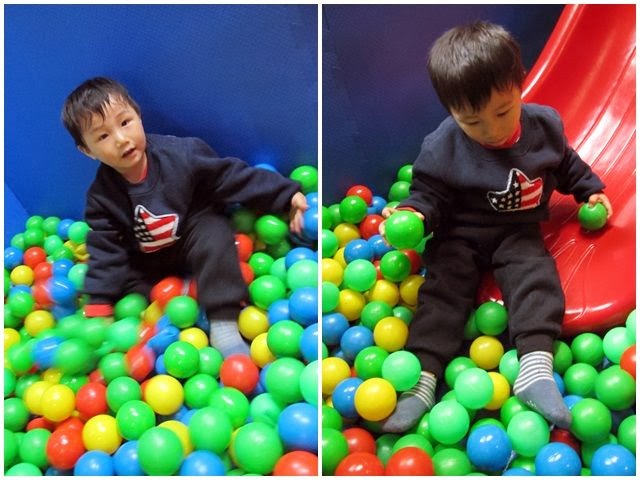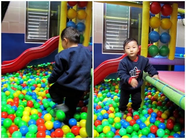 玩到汗流浹背的小Q,喝玩水後還偷偷跑回球池內幾乎不想回家啦!