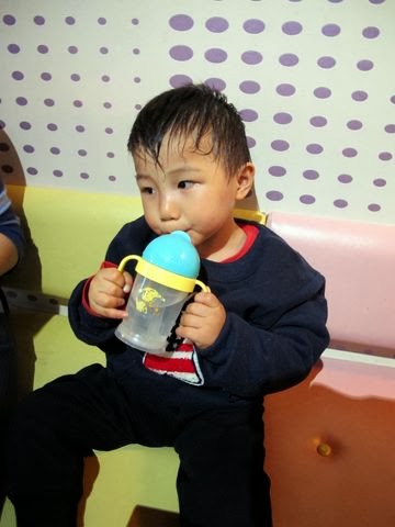 他在裡頭玩,我們則在外面喝下午茶~嘻