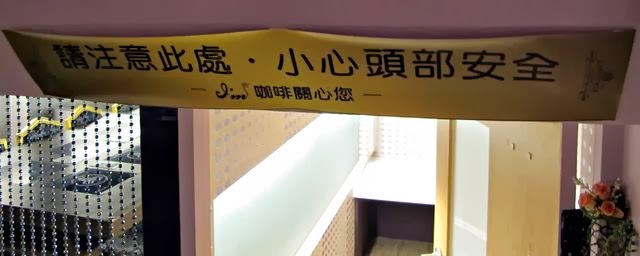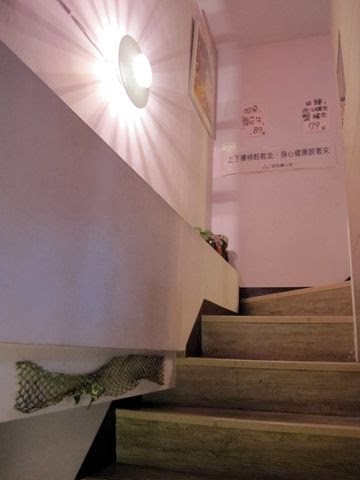 店裡走道有點小,於是店家貼心的在樓梯間貼著提示標語