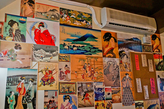 店內貼滿了很多日本浮世繪(如果不是版畫的再製品是不是就不算?) 圖,讓我想到之前去日本玩時有間小店也是這樣裝璜
