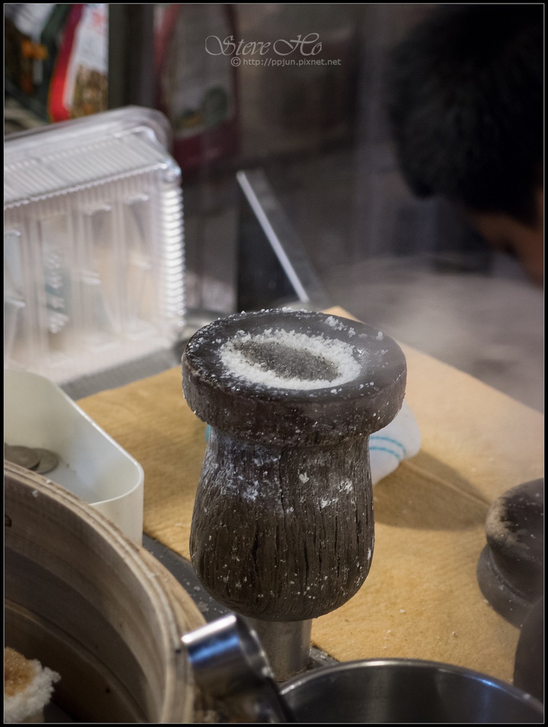 ▼ 因容器的底部有個小孔,可以讓熱蒸氣導入,用熱騰騰的蒸氣,慢慢地將蓬萊米粉蒸熟。
