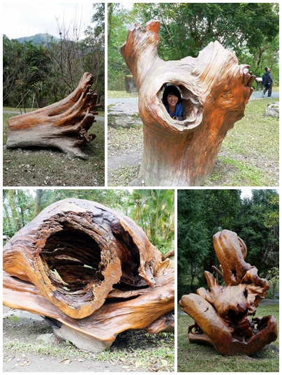 大型檜木的作品散落在圓形外面