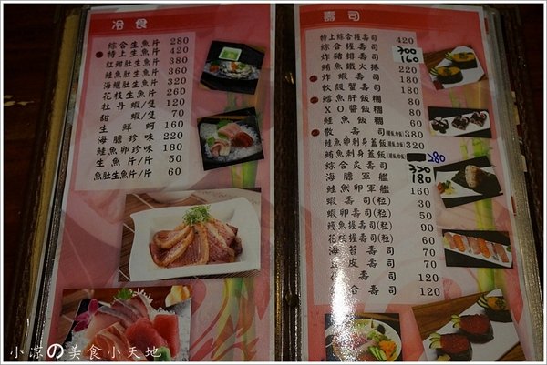 右上:鮭魚卵&海鱺魚右下:旗魚 左下:蝦卵&海膽