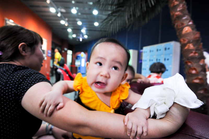這小子也開始在灰灰叫,該找一下育嬰室了。