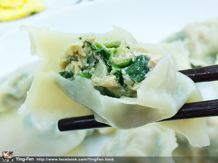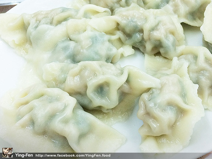 我喜歡水餃裡面包綠色的菜,水餃沒有很厚,還可以看到裡面的料。