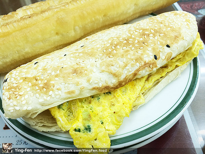 油條吃起來很酥脆,不會很油膩,一邊吃油條一邊配豆漿真是絕配阿!燒餅上面有一粒粒白芝麻和少許的黑芝麻,燒餅每口都有芝麻香味和燒餅香,內夾蔥蛋,蔥蛋口感很嫩帶有點水分,加上燒餅一起吃,不會感覺到太乾。