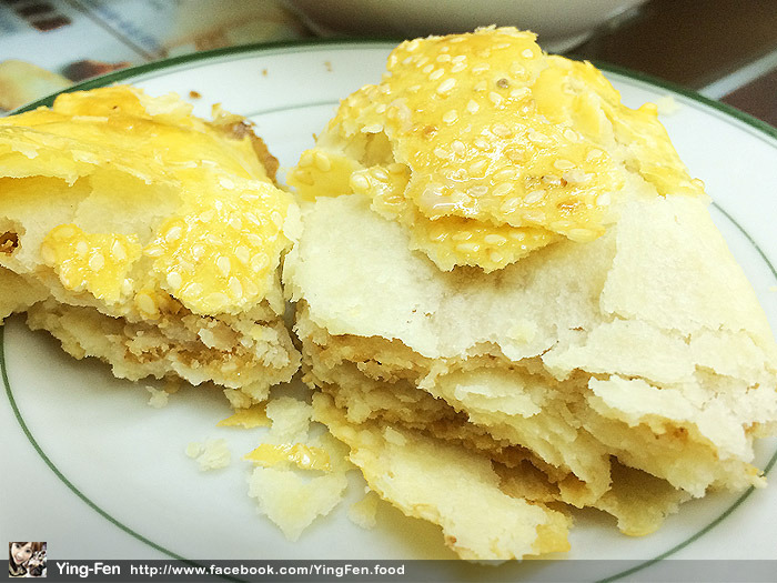 外皮最上層有很香的雞蛋和白芝麻味道,吃在嘴裡嘴巴都有芝麻香味散發出來,剖一半有好多層次,口感好酥裡面有包淡淡的芝麻香甜。
