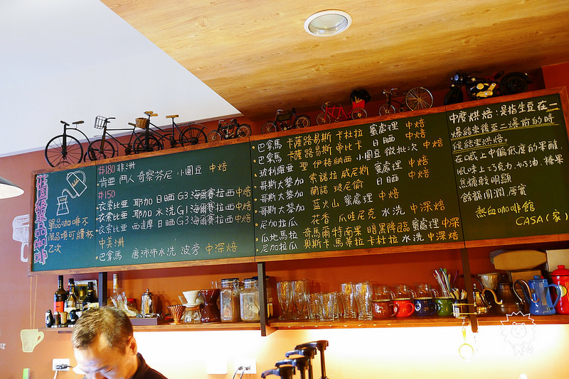 單品咖啡的種類寫在黑板上 標示著產地 莊園 還有焙度